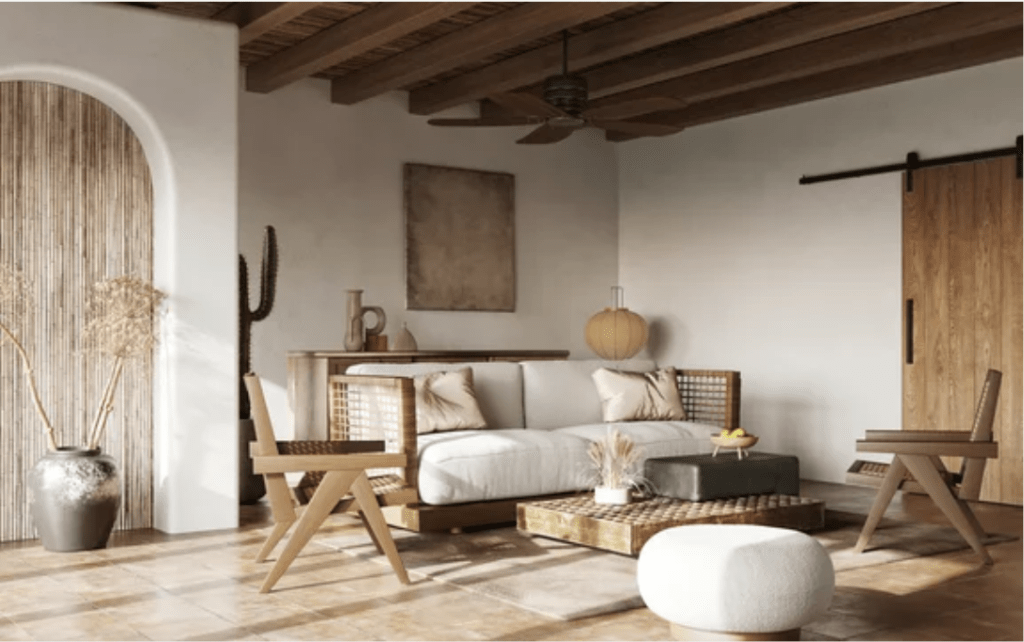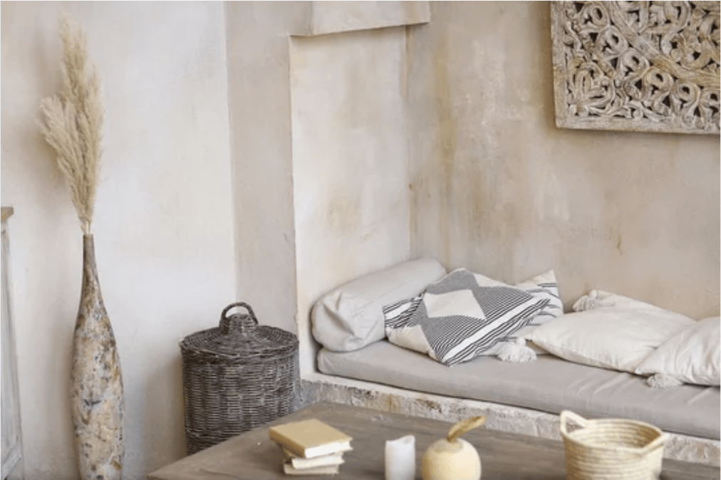 Using earth tone colours not only on walls and floors but also in decor pieces and using natural materials that are aged and show their life, is one of the characteristics of a Wabi Sabi decorative style.